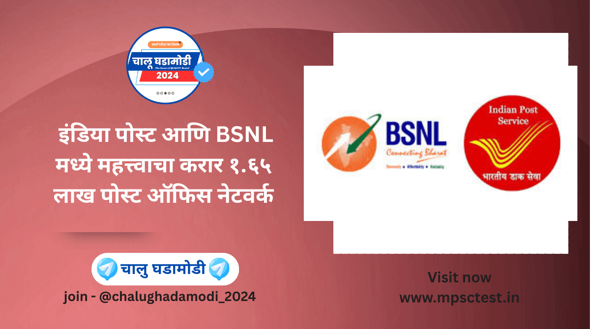 टपाल विभाग (India Post) आणि भारत संचार निगम लिमिटेड (BSNL) यांनी एक धोरणात्मक सामंजस्य करार (MoU) केला आहे.