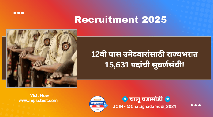 महाराष्ट्र पोलीस भरती 2025 : महाराष्ट्र पोलीस दलात भरती प्रक्रिया 29 ऑक्टोबरपासून सुरू होत आहे. या भरतीमध्ये शिपाई; चालक; बँडस्मन; कारागृह शिपाई तसेच एसआरपीएफ या विविध पदांचा समावेश आहे. यासंदर्भातील सविस्तर माहिती पोलीस भरतीच्या अधिकृत संकेतस्थळावर प्रसिद्ध करण्यात आली आहे. या भरतीसाठी अर्ज करण्याची शेवटची तारीख 30 नोव्हेंबर 2025 निश्चित करण्यात आली आहे.