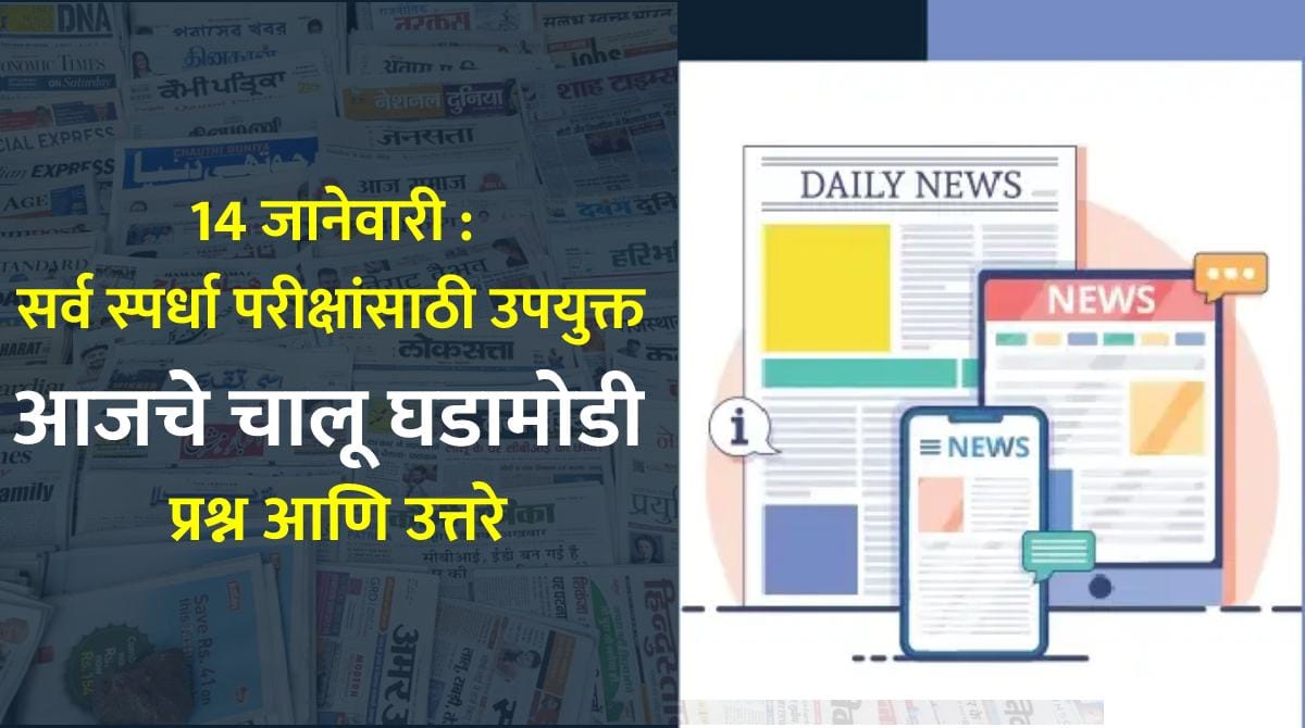 आज आम्ही तुमच्यासाठी 14 जानेवारी 2023 च्या सर्व महत्त्वाच्या चालू घडामोडींवर प्रश्नांची मालिका घेऊन आलो आहोत. हे सर्व दैनिक चालू घडामोडी, MPSC, UPSC, SSC, रेल्वे आणि इतर सर्व परीक्षांसाठी अतिशय उपयुक्त ठरतील.