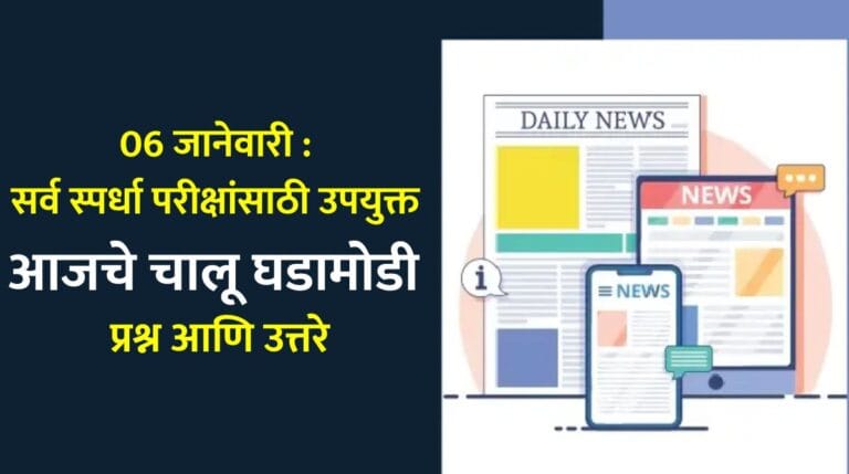 6 जानेवारी : सर्व स्पर्धा परीक्षांसाठी उपयुक्त आजचे चालू घडामोडी प्रश्न आणि उत्तरे