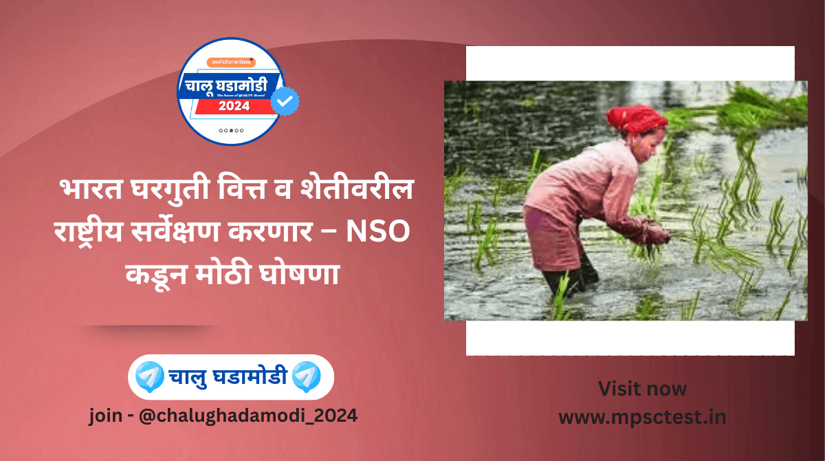 All India Debt and Investment Survey (AIDIS) : भारत सरकारने देशातील कुटुंबांच्या आर्थिक स्थिती आणि शेतकऱ्यांच्या परिस्थितीचा सखोल अभ्यास करण्यासाठी मोठे पाऊल उचलले आहे. सांख्यिकी आणि कार्यक्रम अंमलबजावणी मंत्रालयाच्या (MoSPI) अंतर्गत राष्ट्रीय सांख्यिकी कार्यालय (NSO) जुलै २०२६ ते जून २०२७ दरम्यान दोन महत्वाची सर्वेक्षणे करणार आहे –
