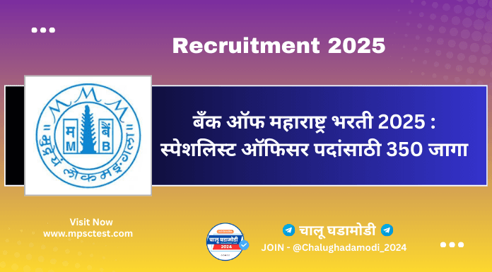 Bank of Maharashtra SO Recruitment 2025 : बँक ऑफ महाराष्ट्र मध्ये स्पेशलिस्ट ऑफिसर (SO) पदांसाठी मोठ्या प्रमाणात भरती जाहीर करण्यात आली आहे.