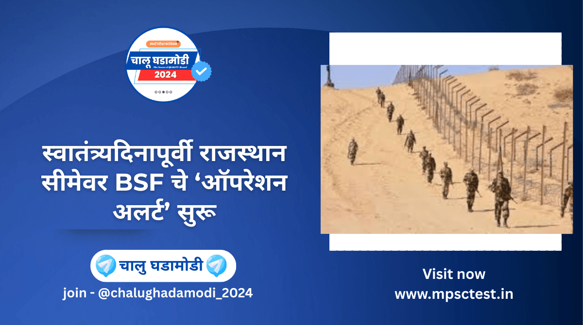 स्वातंत्र्यदिन 2025 च्या पार्श्वभूमीवर सीमा सुरक्षा दल (BSF) ने राजस्थान-पाकिस्तान सीमेवर ‘ऑपरेशन अलर्ट’ नावाची उच्च-तीव्रतेची सुरक्षा मोहीम सुरू केली आहे. BSF Independence Day Security Rajasthan