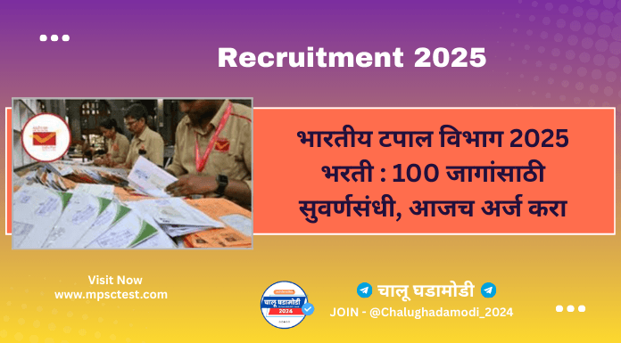 India Post Recruitment 2025 Apply Online : भारतीय टपाल विभागाने सहाय्यक पोस्टल प्रशिक्षणार्थी (Assistant Postal Trainee) या पदासाठी मोठी भरती जाहीर केली आहे.