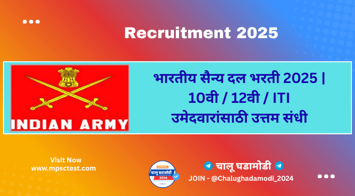 10वी, 12वी किंवा ITI उत्तीर्ण उमेदवारांसाठी भारतीय सैन्यात स्थिर व प्रतिष्ठित करिअर घडविण्याची ही सुवर्णसंधी आहे.