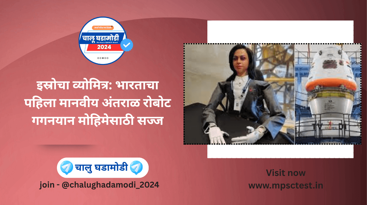 ISRO Vyommitra humanoid robot : भारतीय अंतराळ संशोधन संस्था (ISRO) लवकरच भारताचा पहिला मानवरूपी अंतराळ रोबोट — “व्योमित्र” — अवकाशात पाठवणार आहे. हा ऐतिहासिक क्षण डिसेंबर 2025 मध्ये घडणार असून, तो गगनयान मोहिमेच्या पहिल्या मानवविरहित उड्डाणात (G1 Mission) सहभागी होईल.