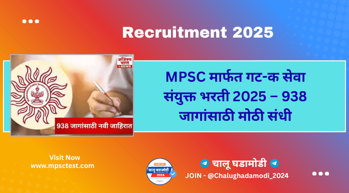 MPSC Group-C Services Recruitment 2025 : महाराष्ट्र लोकसेवा आयोग (MPSC) मार्फत महाराष्ट्र गट-क सेवा संयुक्त पूर्व परीक्षा 2025 साठी भरतीची जाहिरात प्रसिद्ध करण्यात आली आहे.