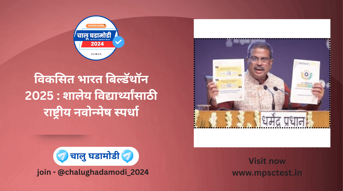 Viksit Bharat Buildathon 2025 : विकसित भारत बिल्डॅथॉन 2025 हा केंद्रीय शिक्षण मंत्री धर्मेंद्र प्रधान यांनी सुरू केलेला राष्ट्रीय स्तरावरील नवोन्मेष (Innovation) कार्यक्रम आहे. देशातील शाळांमधील विद्यार्थ्यांना हॅकेथॉन स्वरूपात सर्जनशीलता, समस्या सोडवणे आणि नवोन्मेषी उपाय शोधण्यास प्रोत्साहन देणे हा या उपक्रमाचा मुख्य उद्देश आहे.