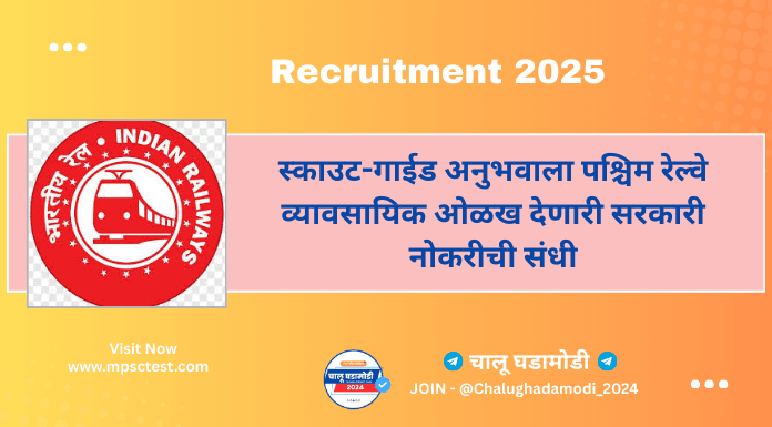Western Railway Scout & Guide Bharti 2025 : स्काउट व गाईड अनुभवाला व्यावसायिक ओळख देण्याची सुवर्णसंधी! जर तुम्ही उत्साही, सक्रिय आणि समाजोपयोगी कार्यात रस असलेले युवक/युवती असाल, तर ही भरती तुमच्या नेतृत्वगुणांना उजाळा देण्यासाठी आदर्श आहे.